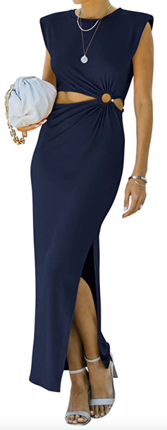 ANRABESS Women Summer Sleeveless Padded Shoulder Cutout Sexy Formal Slim Fit Maxi Slit Dress