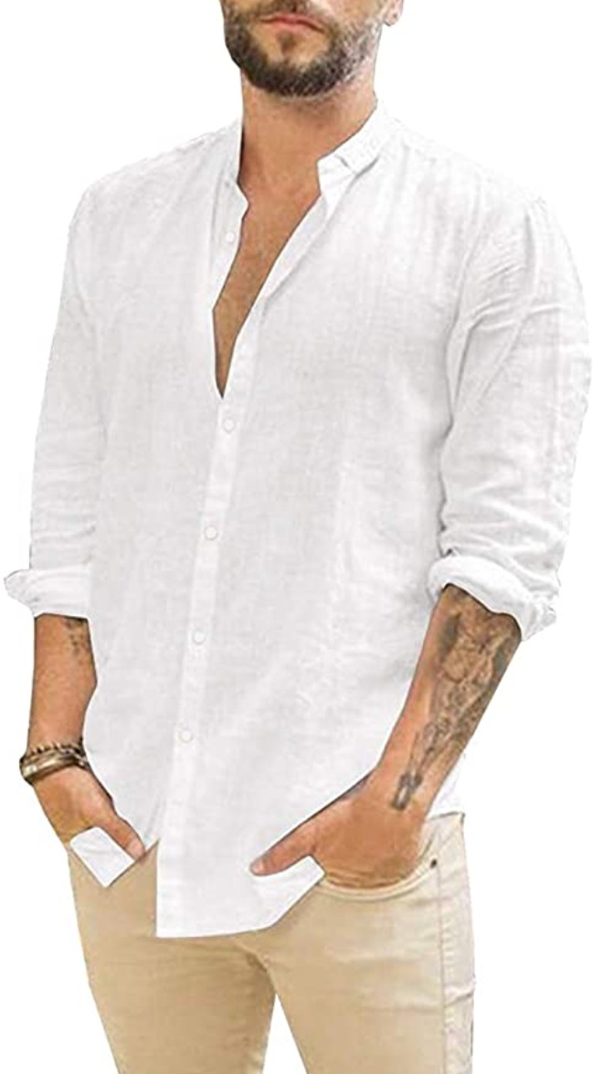 APRAW Mens Linen Button Down Shirts Long Sleeves Summer Beach Casual Regular Fit Shirt Tops