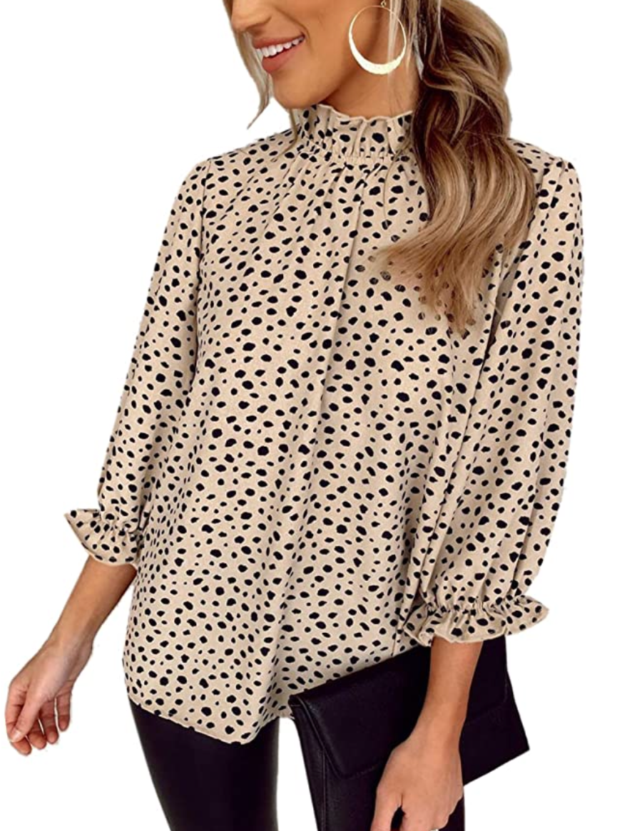 Angashion Women's Tops Casual Floral Print Long Sleeve Ruffle Loose Babydoll Blouse Shirt Tunic Top