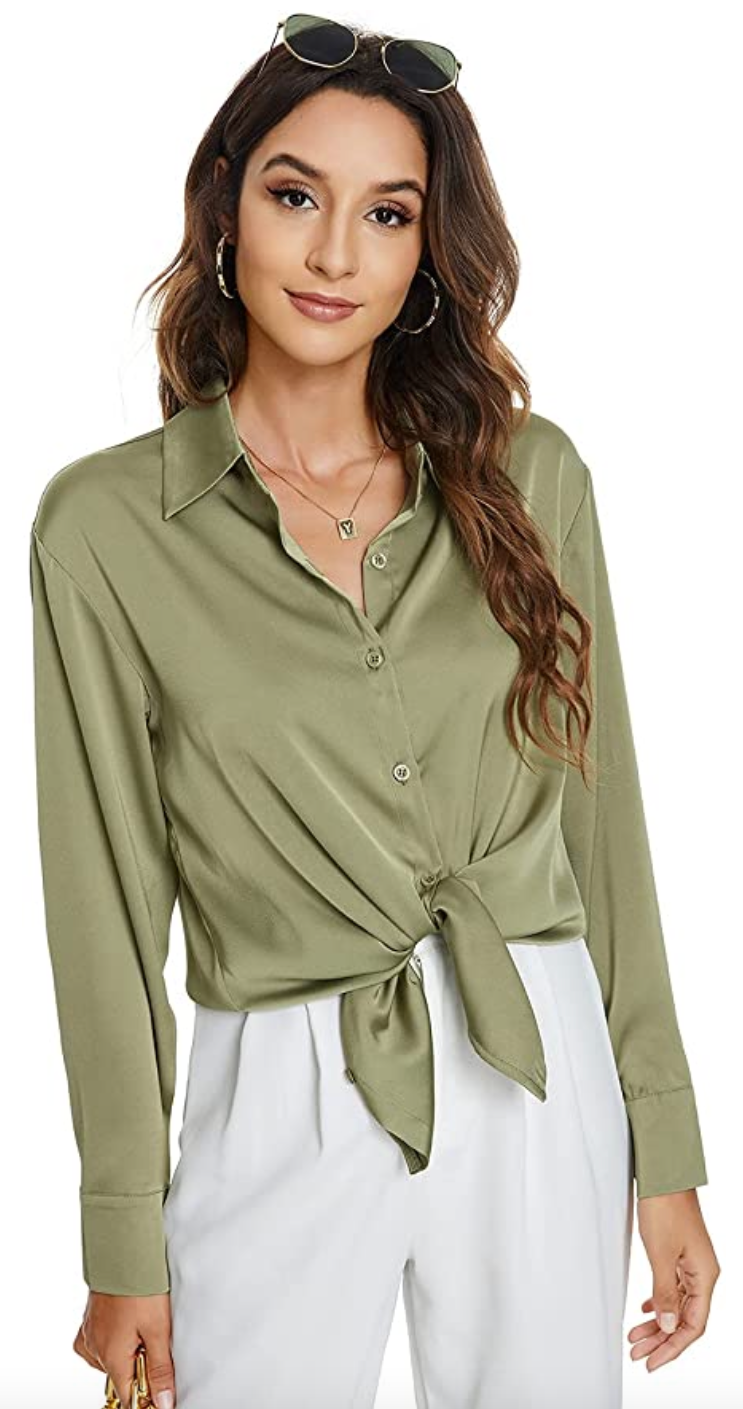 Atnlewhi Womens Long Sleeve Button Down Satin Silk Shirts Casual Business Smooth Blouse Tops